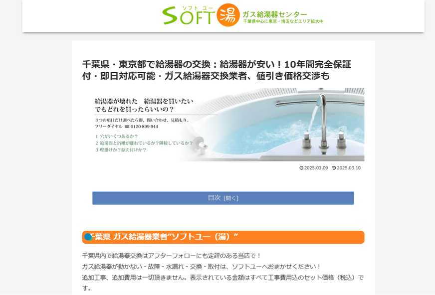 | 運営会社 | 千葉 ガス給湯器センター ソフトユー |