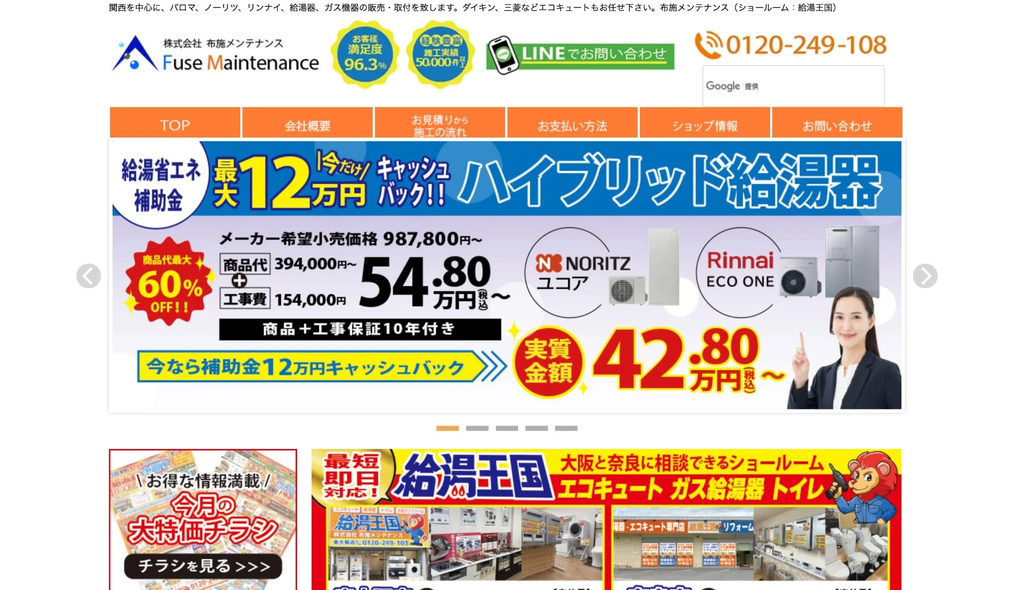 給湯器大手のノーリツ・リンナイ・日立の正規販売店なので安心感があります。