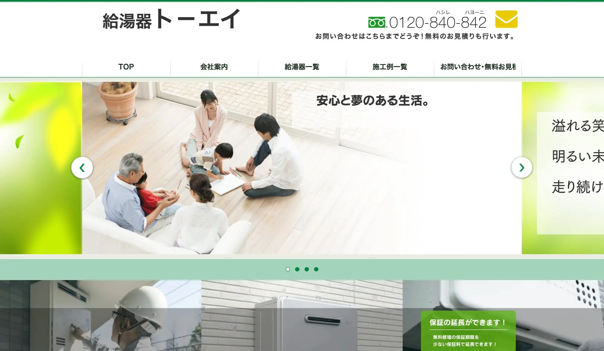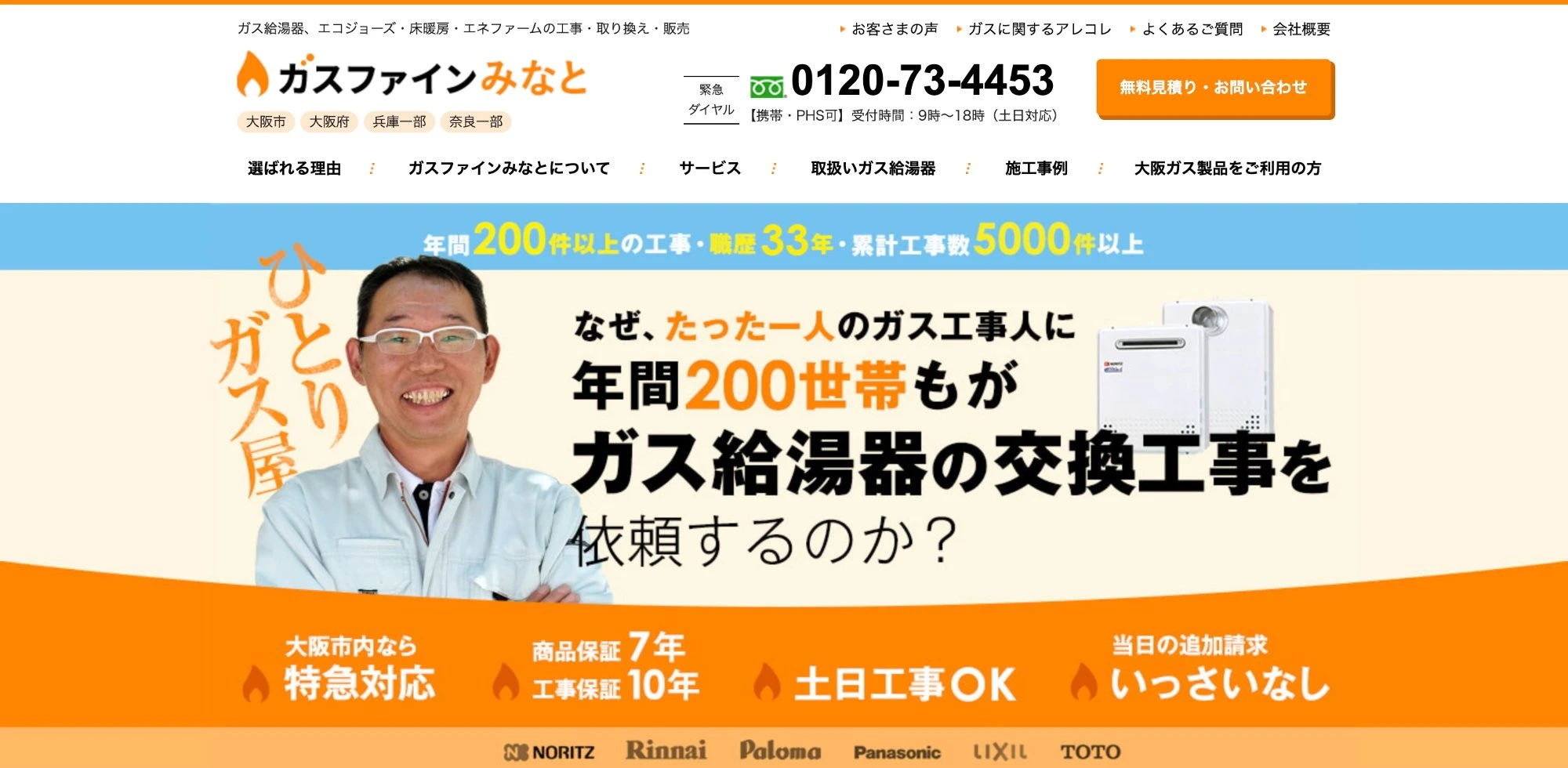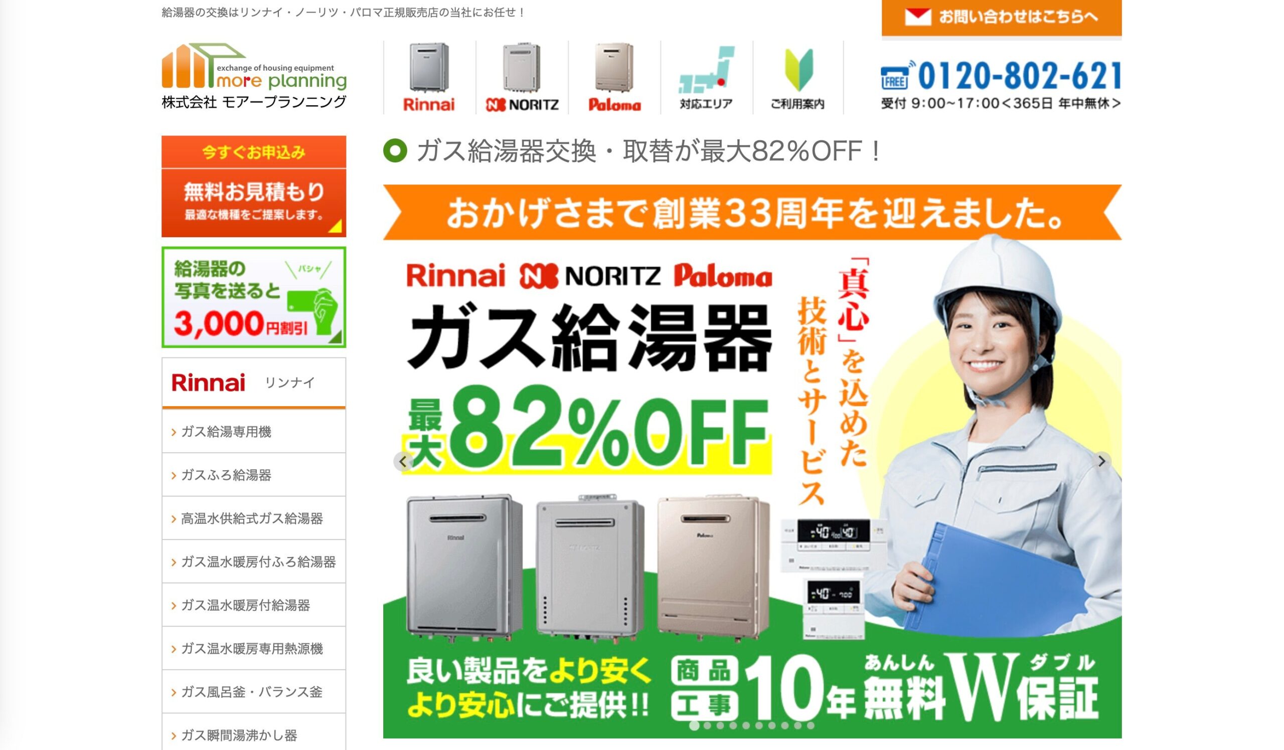 給湯器大手のノーリツ・リンナイ・日立の正規販売店なので安心感があります。