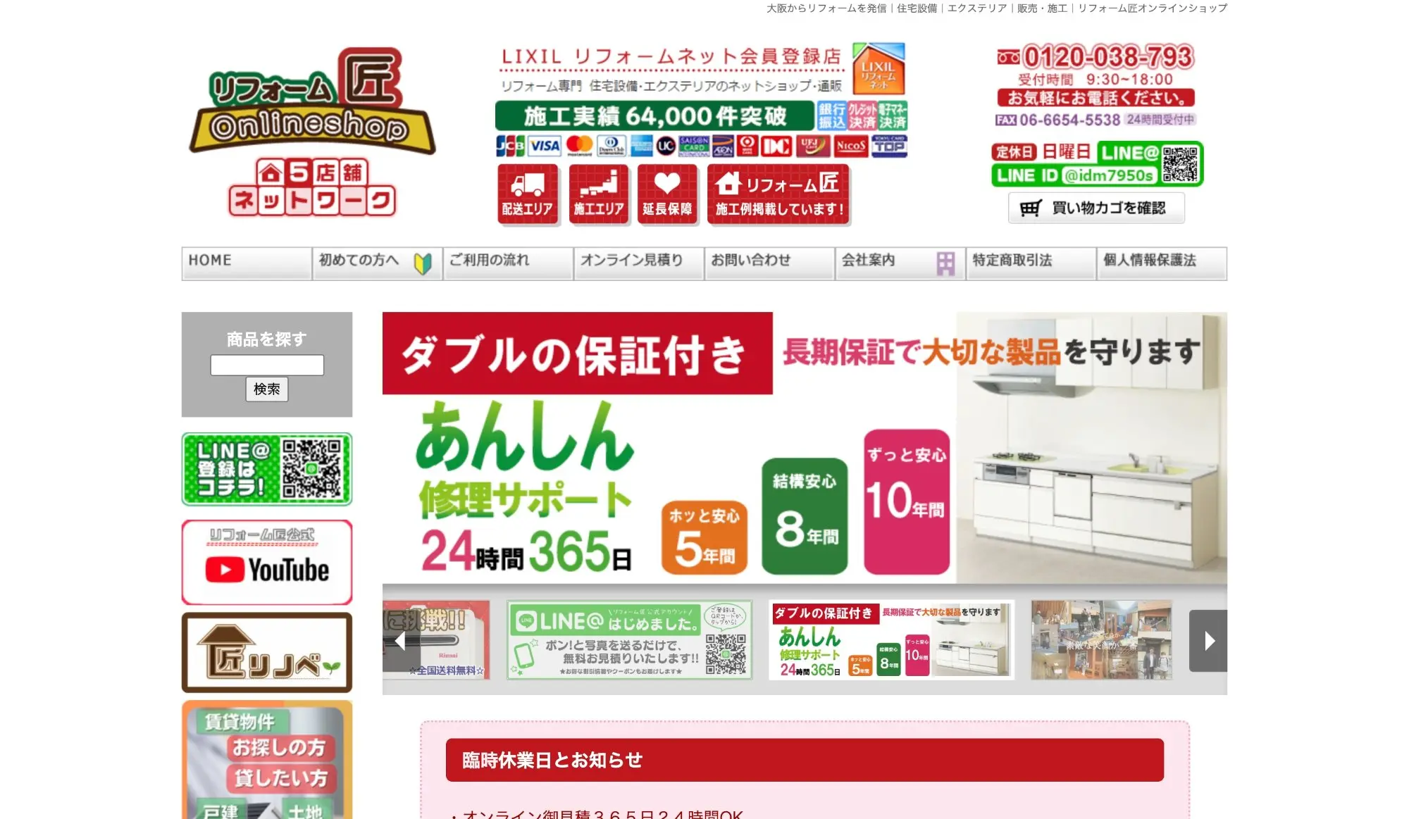 受付時間平日 9:00~18:00/土曜 9:00~17:00 日曜・祝日は休み(祝日は工事可能)