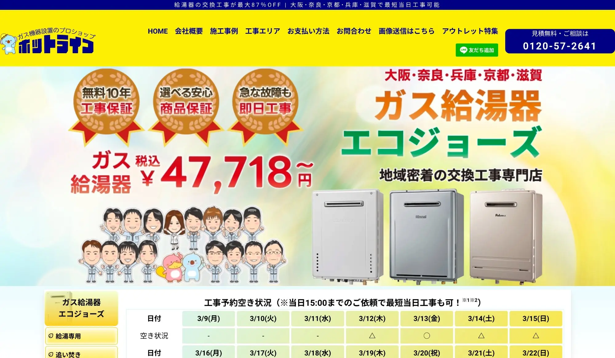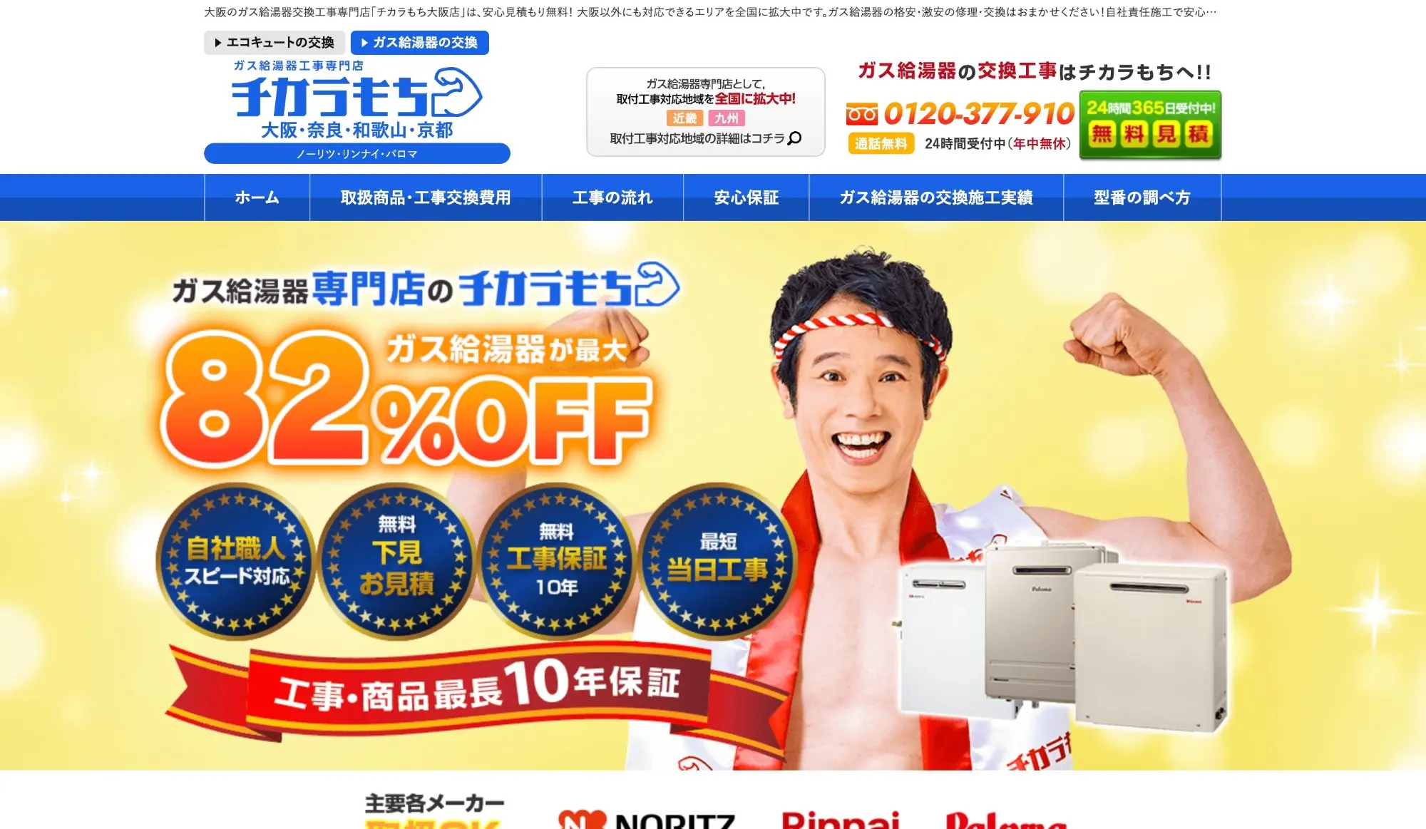 給湯器大手のノーリツ・リンナイ・日立の正規販売店なので安心感があります。